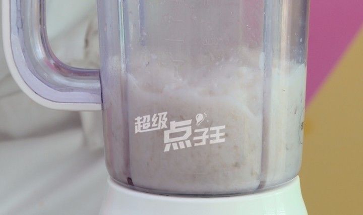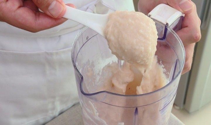 搅拌过程中要注意,由于我们的食材非常粘稠,所以打一会就要用勺子搅拌一下,接着再打,这样才能保证细腻的口感。▽