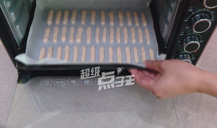 拿出烤盘,一根根金黄诱人的虾条出现啦~▽