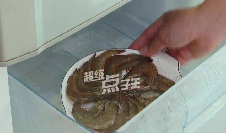 把大虾放进冰箱冷冻室里速冻5分钟,让虾肉变硬一点,方便一会剥壳。▽