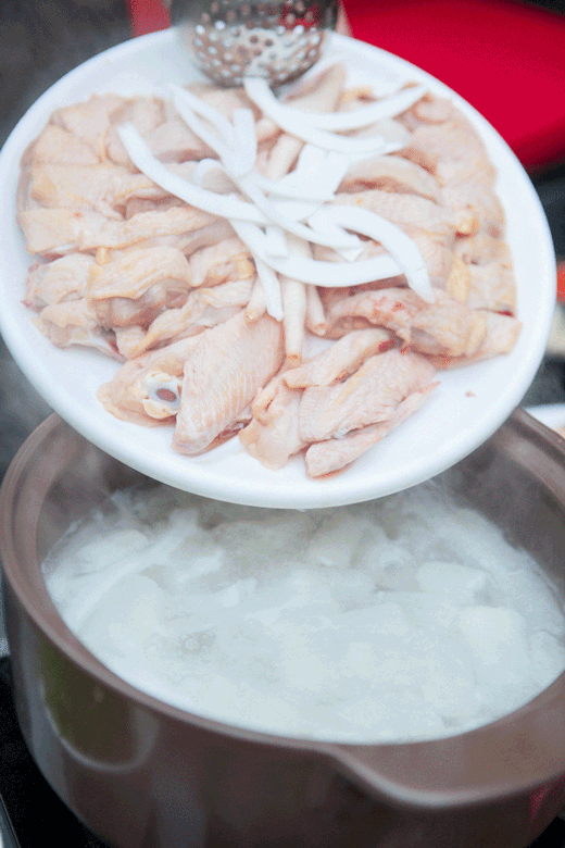 第二步,下鸡肉!你见过一次性下四只鸡的壮观场景吗?平时根本舍不得这样吃鸡!毕竟这在平时可是要花掉500多大洋的~