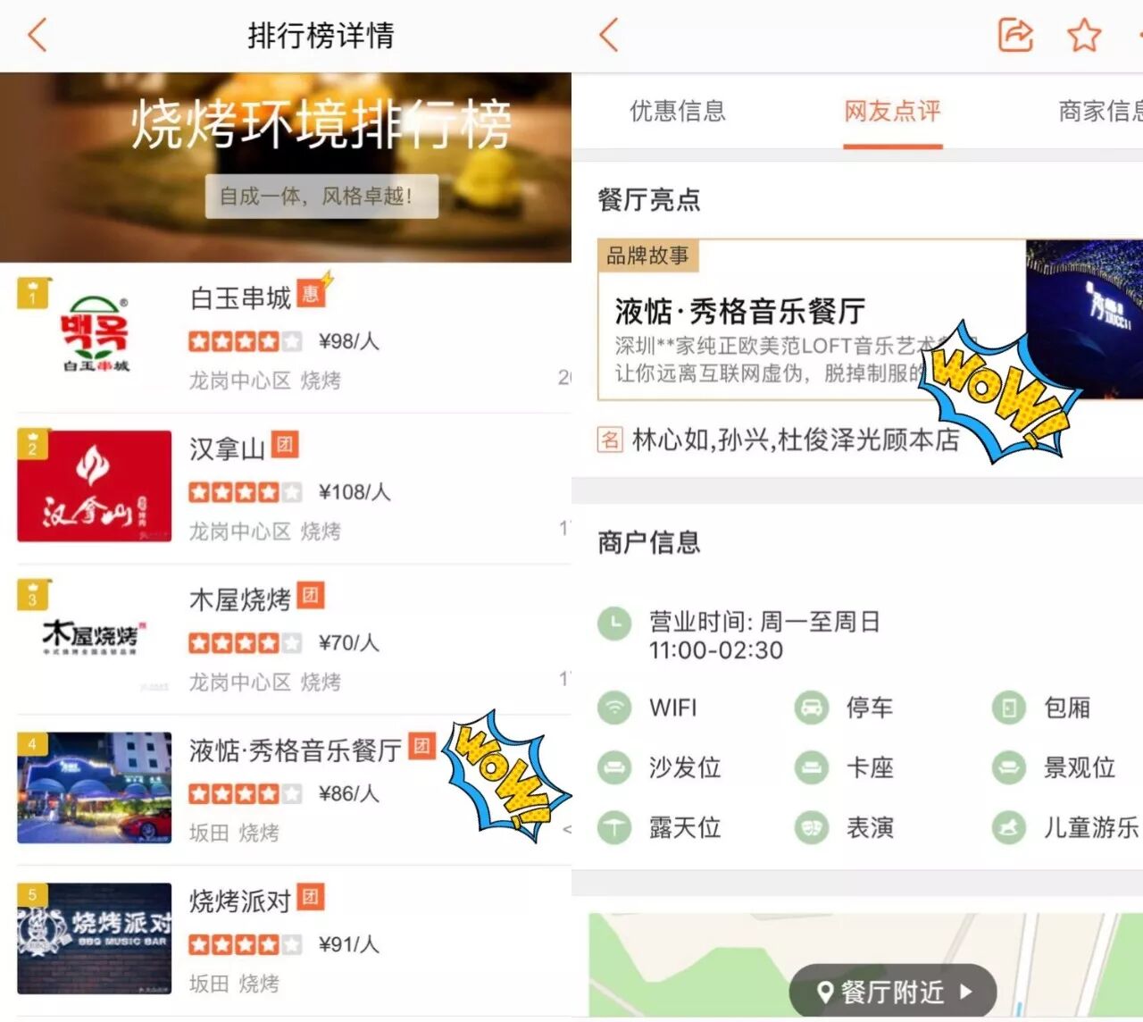 他家的环境真的很不错,在点评网上排行龙岗烧烤环境第四名,就连林心如、孙兴、杜俊泽这些明星都来过了呢!
