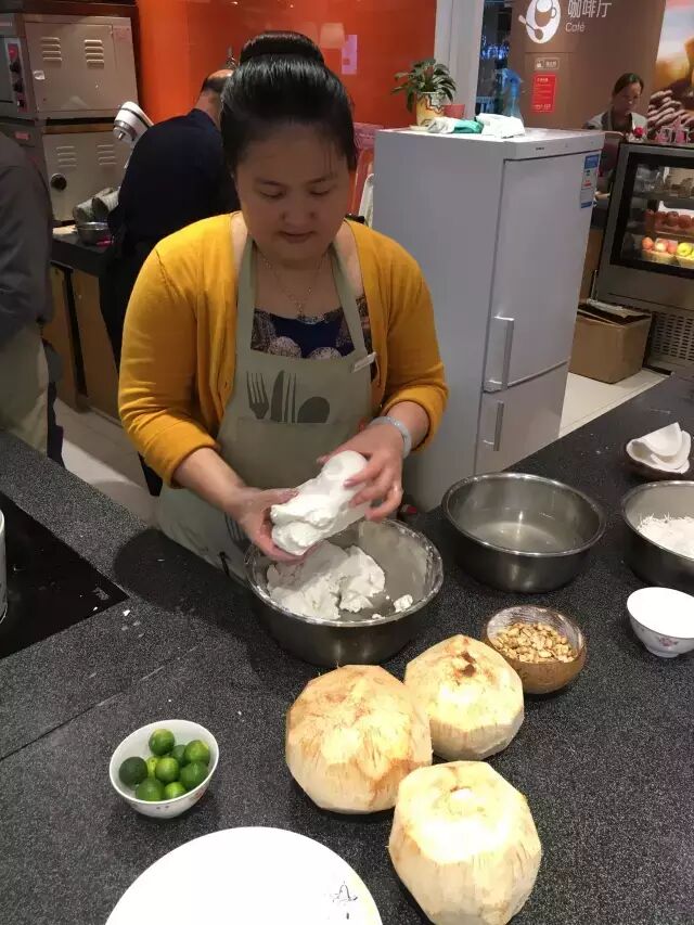 美味的菜肴,自然离不开质地上佳的食材。丽花告诉小编,活动中使用的食材都是丽花当天一早精心准备的,无论鲜度还是质度都是毋庸置疑的。看着这漂亮的椰子,小编我都不免馋心泛滥啦~