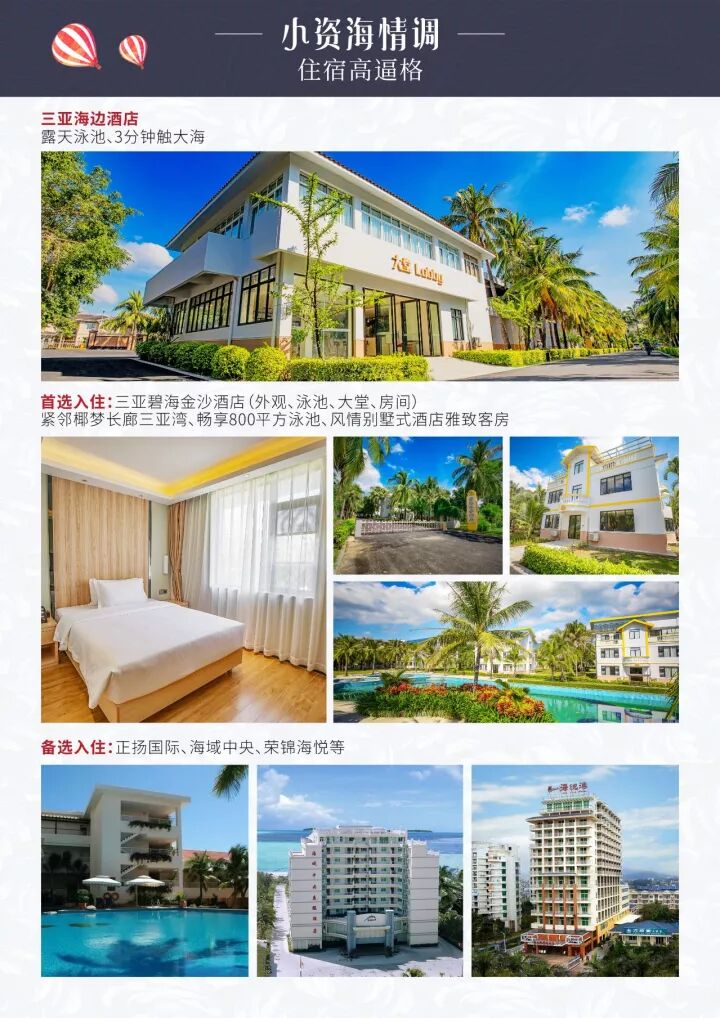 ●小资住宿:精选高性价比的三亚海边酒店,首选入住碧海金沙风情别墅式酒店雅致客房、畅享800平露天泳池、分钟和秒与海的距离,夫妻、爱侣可安排全程大床房;