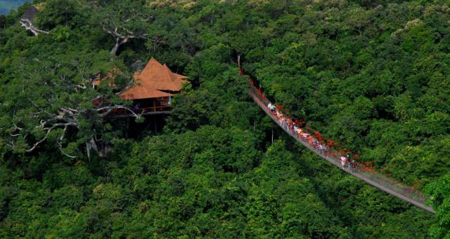随后来到著名导演冯小刚电影《非诚勿扰2》的外景取景地【亚龙湾热带天堂森林公园】(游览不少于120分钟)这里是离城市最近的天然森林氧吧。乘观光电瓶车直奔山顶,远看美丽的亚龙湾和南中国海,近看星罗棋布的一座座鸟巢尽收眼底。远眺电影《非诚勿扰II》的木屋别墅群,不愧为真正的“热带天堂”。