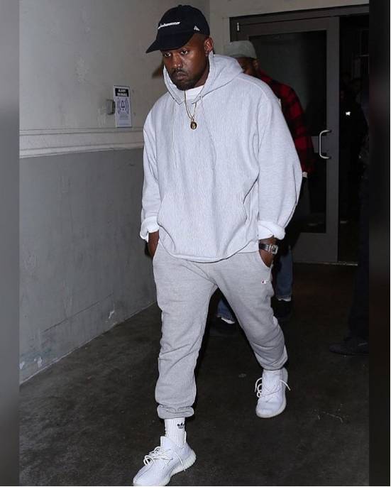 Kanye West 近日以一身灰白装扮现身,脚上一双未发售的全白 adidas Yeezy Boost 350 V2 格外引人注目,只可惜目前尚未明确这款全白配色的发售信息,默默的期待明年发售咯!