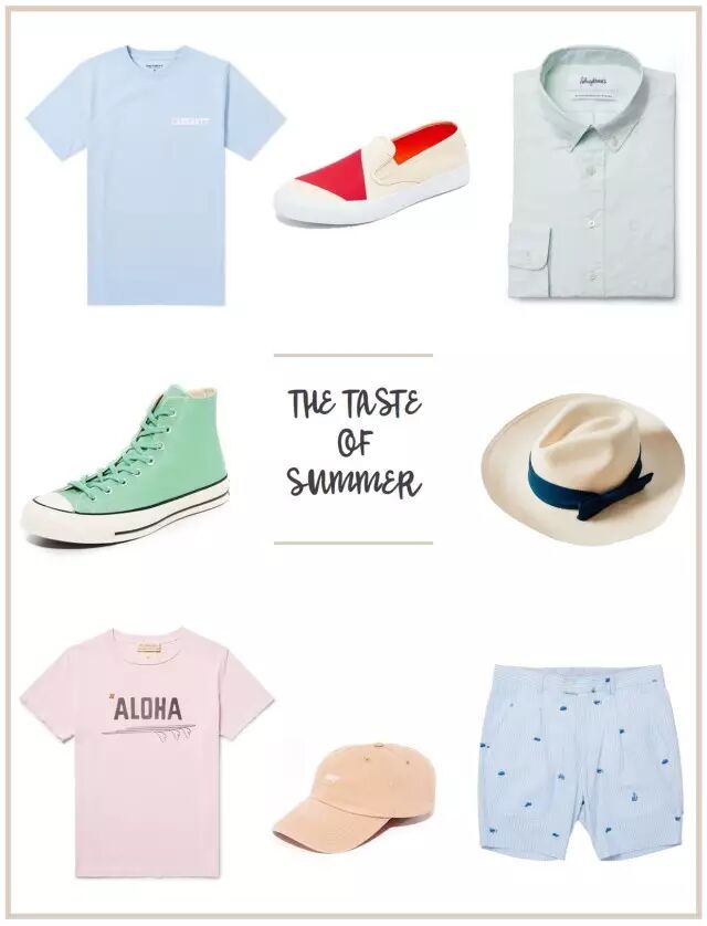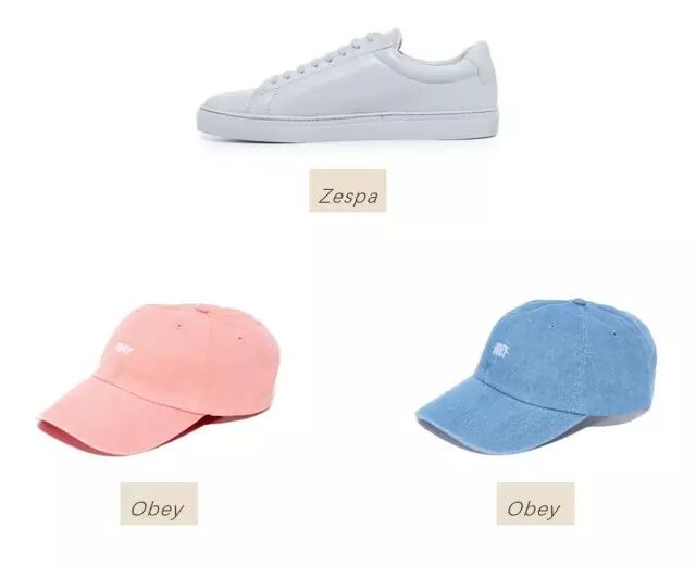 鞋子、配件(尤其是帽子)就可以大胆选择冰淇淋色系了,搭配黑白蓝灰的单品,抢眼而不过火。