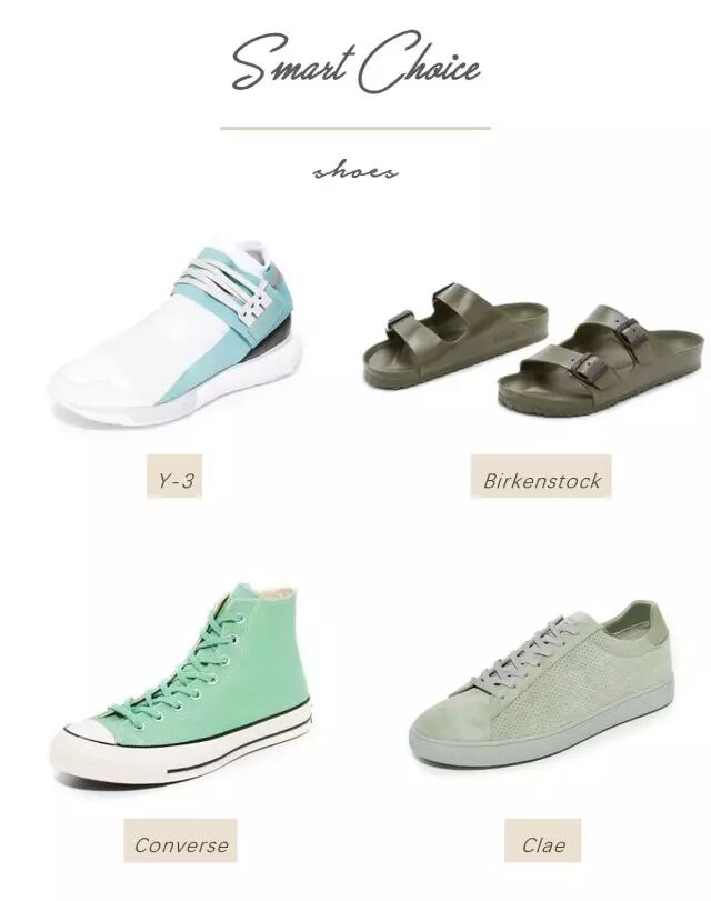 绿色系无论在上衣、裤子、鞋子上都能有适当的位置,脚上踩着一抹绿,仿佛脚步也变得轻快起来~