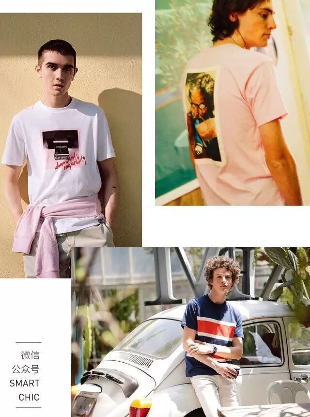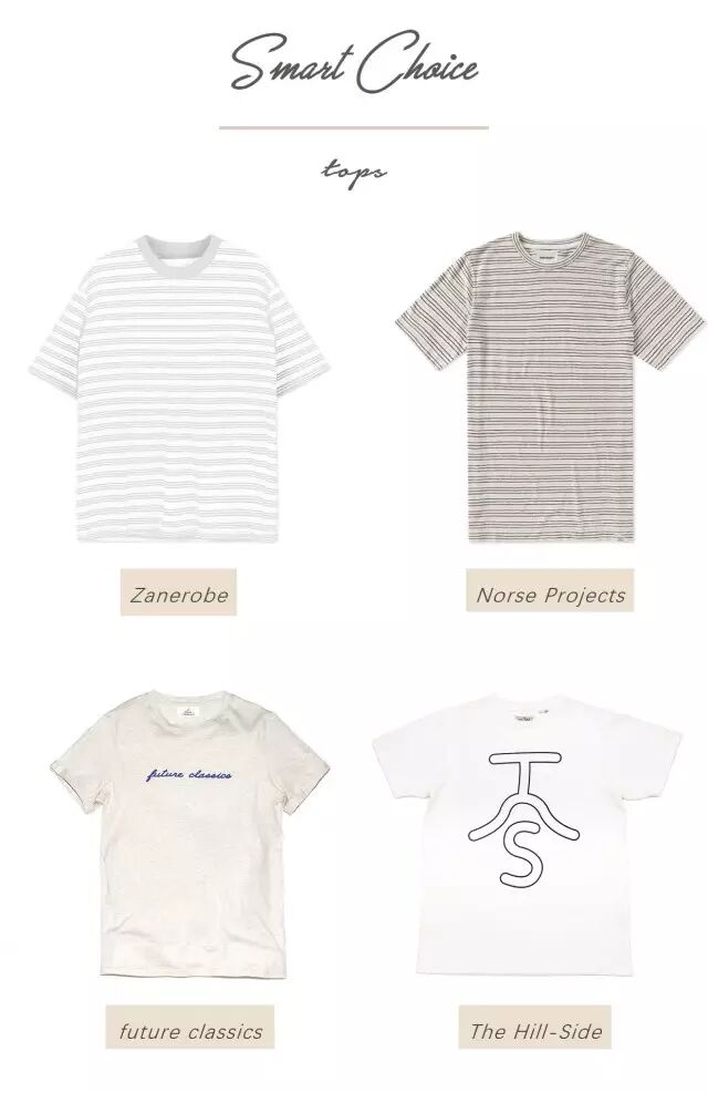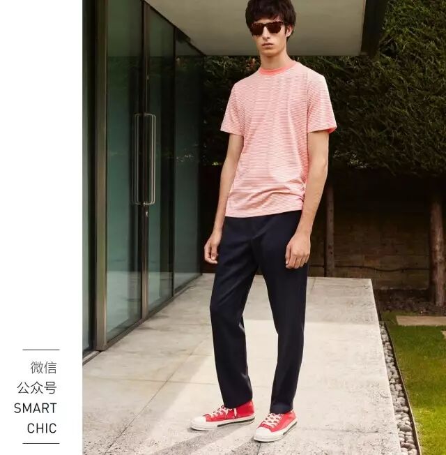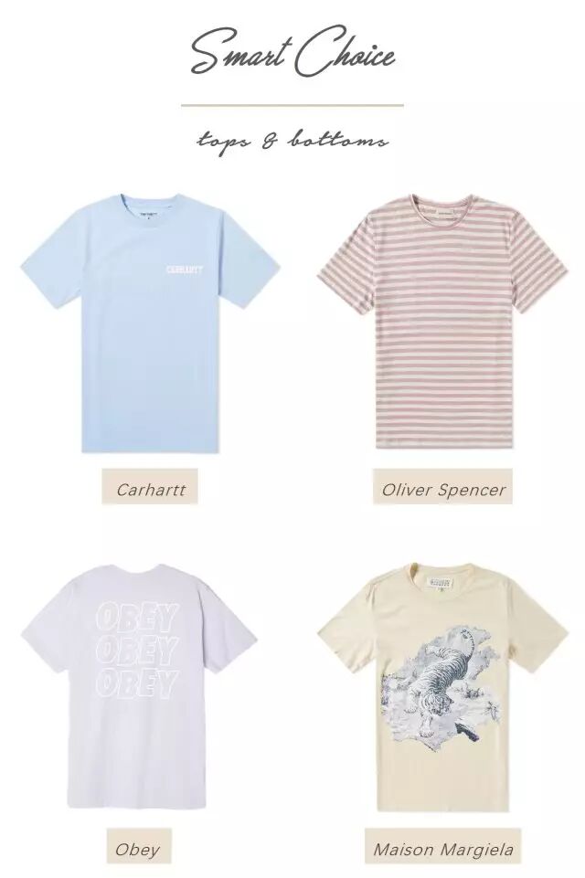 害怕难以驾驭大面积的冰淇淋色,可以在选款时多花点心思,例如条纹款或带一些硬朗图案的T恤,或者冰淇淋色只作为衣服上的点缀。