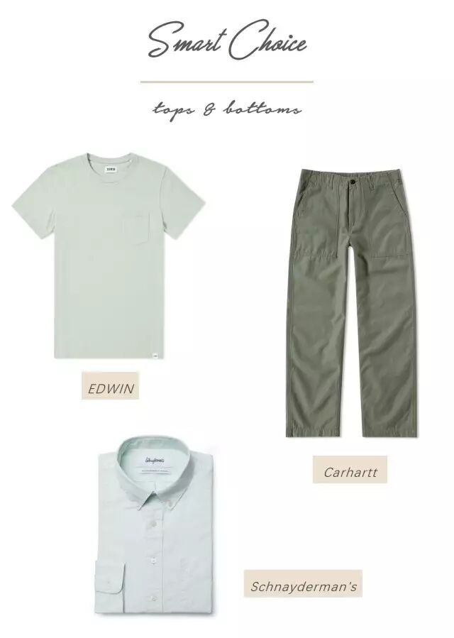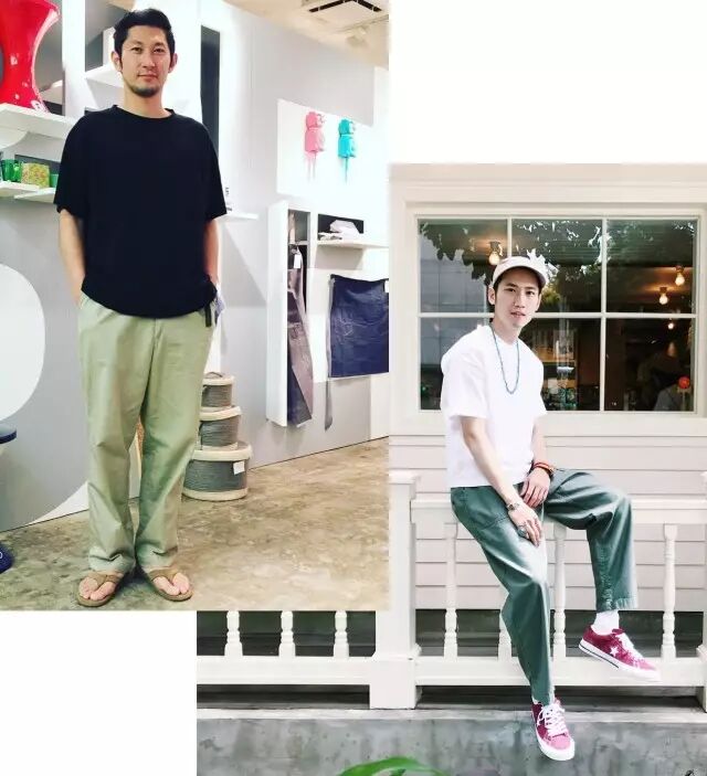 和冰淇淋色不一样,绿色系用在裤子上毫不违和,还非常百搭,穿一双凉拖,共同传达舒爽的风格。