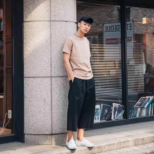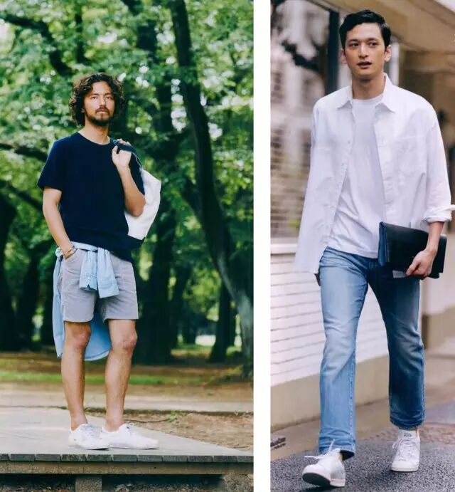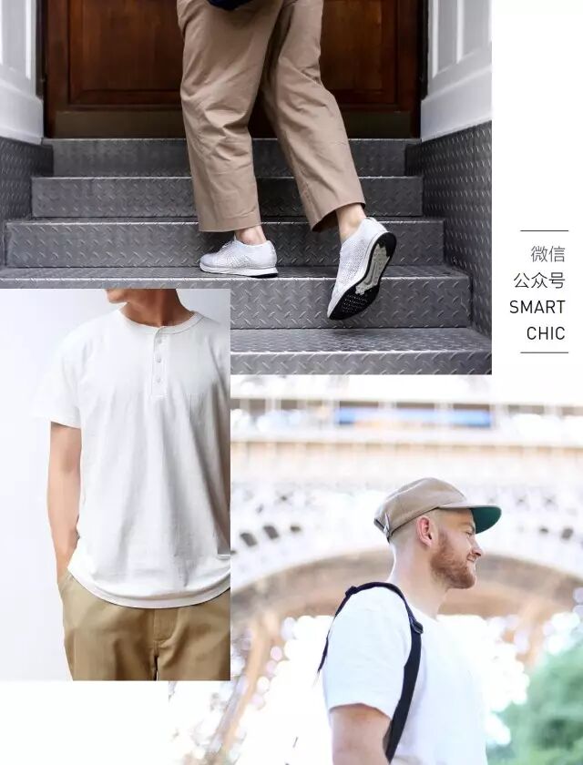 不会像白黑搭配这么生硬,白棕自然的过渡给人的感觉更舒服,而且应用非常简单,例如棕色裤子+白鞋、棕色帽子+白tee、棕色裤子+白tee,随手拿起来就能穿。