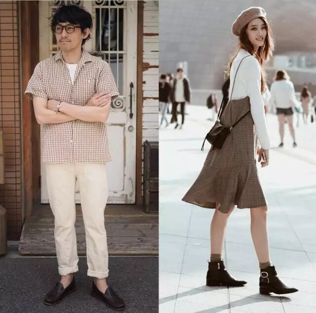 以浅棕色为主调,就像牛奶与咖啡混合后的颜色,再以白色鞋子加以点缀,是稳妥好看的搭配。