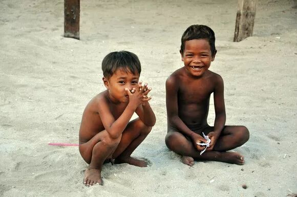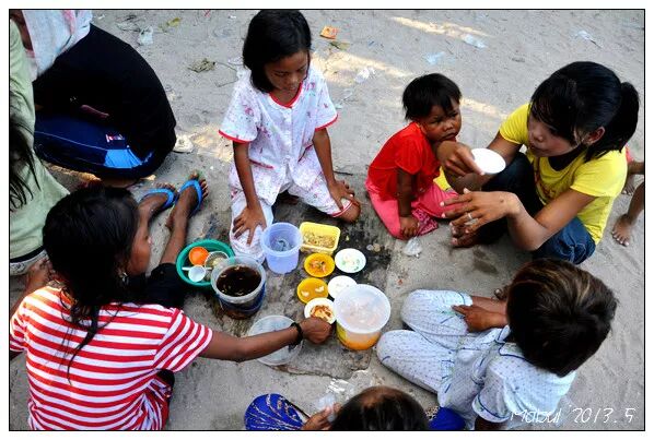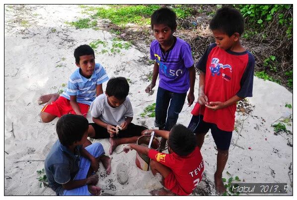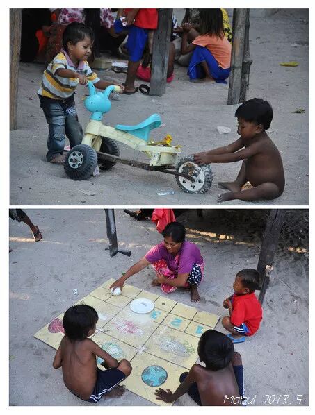 当地渔村的孩子很多,拿些小零食他们都会涌来