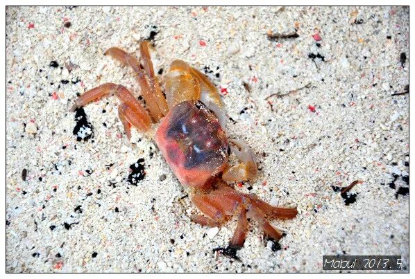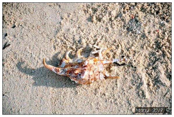 看完日出回沙滩屋,看到门口有一个小海螺,拿起来一看居然是一只寄居蟹