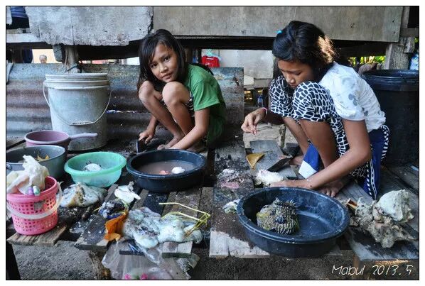 今天的逛了亚庇的菲律宾市场,市场靠海边,沿海逛过去有手工艺市场、水果蔬菜市场、还有干货与鲜活海鲜市场,价格相对便宜。海的对岸搭建了很多破旧房子,据说基本都是偷渡过来的菲律宾人搭建的,在此安居下来的形成黑户,以前沙巴政府抓到黑户就送回菲律宾,不过隔几天又偷渡过来了,后来干脆默认,圈定这个范围给予统一管理,市场里做买卖的菲律宾人很多。