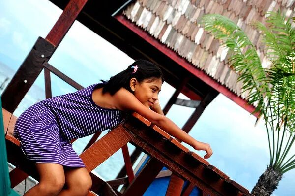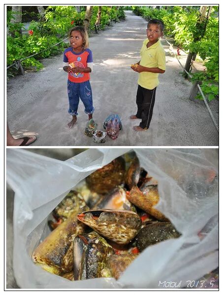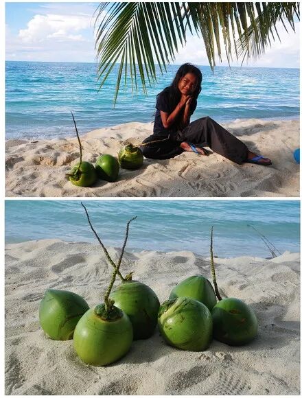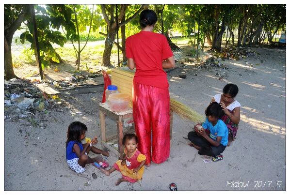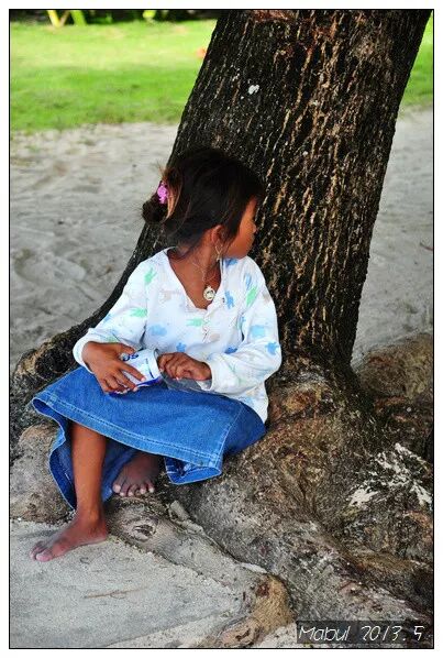 今天就要离岛了,上午充分利用时间在岛上闲逛,认识当地渔村一个叫Misa的小女孩,才10岁,很聪明,能听懂一些简单的英语单词,并能从我们的手势与语气中明白我们的意图。她很乐意当向导,带我们游岛摘椰子拍照。她只有一个小小的要求,就是希望我们帮她去酒店买冰淇淋。