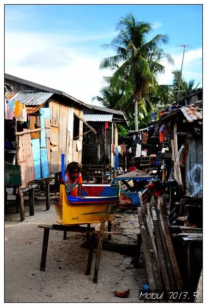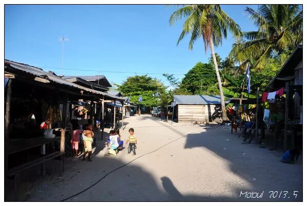 上午浮潜回来吃过中饭,我们又开始在岛上瞎逛,去马布岛的水屋参观,还成功深入渔村内部,