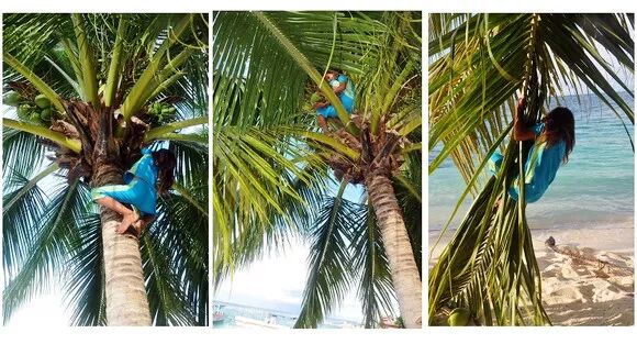 Misa把她的亲妹妹喊过来,帮我们摘椰子