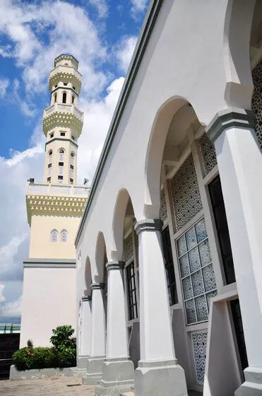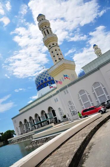 上午我们去沙巴的水上清真寺,当地旅行社的小车一早就在酒店门口等候,导游兼司机是一个皮肤黝黑的高个华裔,中文、马来语和英语都懂,自称沙巴小李飞刀,据他自己讲他曾经是很白的。