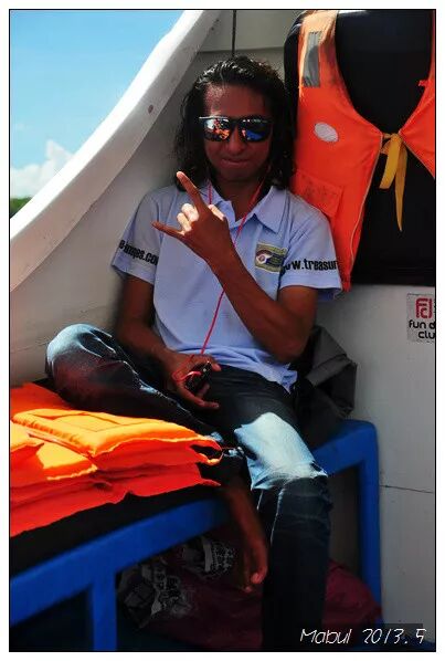 这个黑黑的大胖子是马上带我们去浮潜的工作人员,别看他胖,他的潜水技术超好