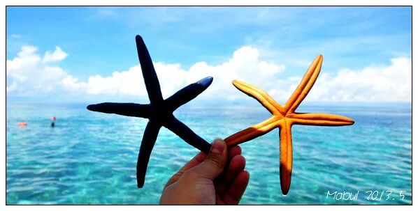 从卡帕莱潜水后,又到离马达京近的海域浮潜,这里海星很多,各种颜色,深潜海底把它们捞上来是不能离开海水太久的,会晒死,因为他们都是小生命!