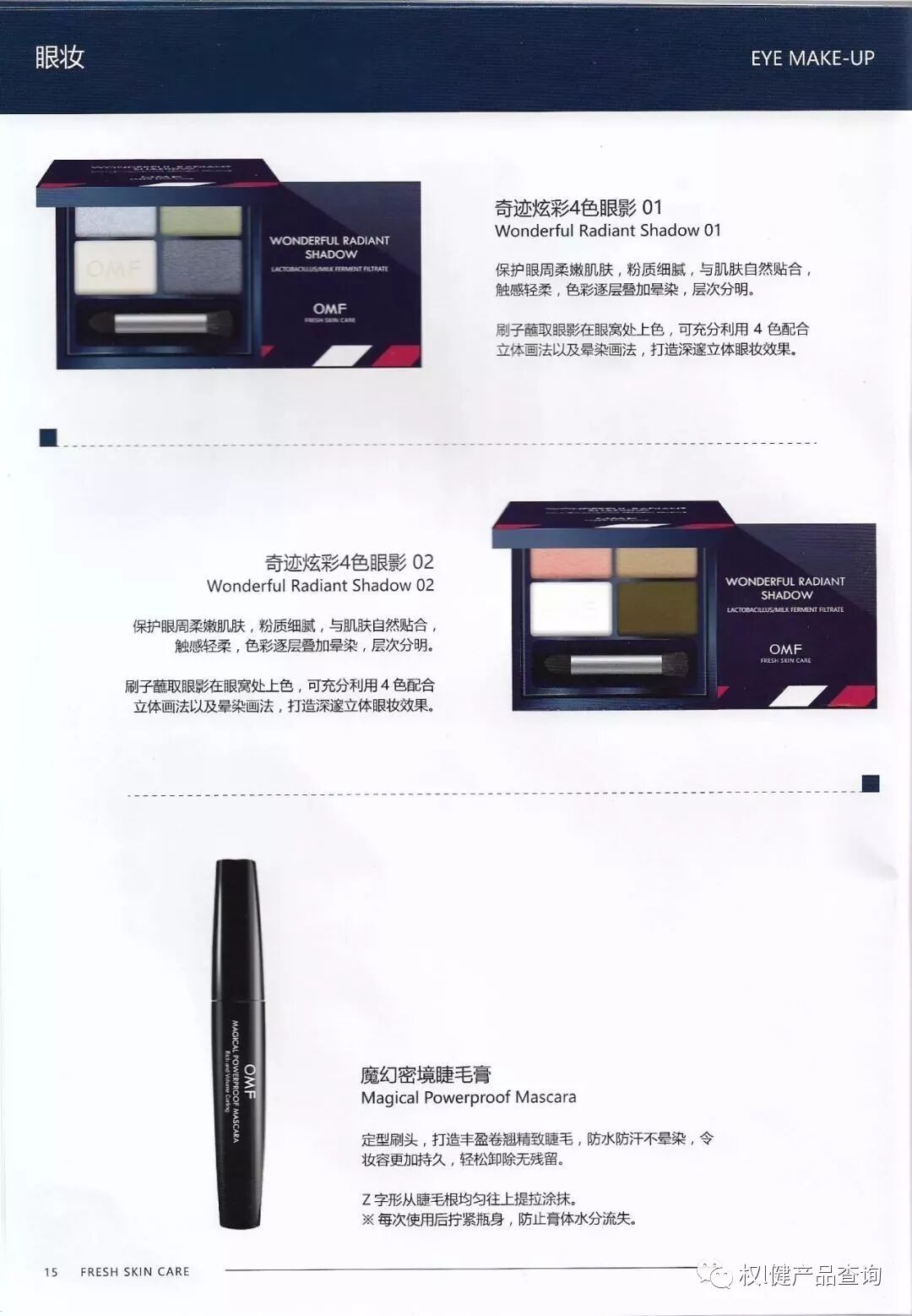 全资收购韩国顶级化妆品OMM工厂(给雅诗兰黛等世界品牌代工),直接上市几百款彩妆产品,即将震撼美容行业!OMM是韩国中高端化妆品品牌,科玛化妆品和韩国OMM是战略合作伙伴,像雪花秀等其他韩国高端一线品牌都是科玛代工生产的!彩妆产品震撼上市以后所有的加盟商都可以以平民的价格享受世界顶级化妆品!权健绝不是你想的那么简单。