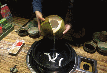 纯天然无添加,把两只大椰青的汁水倒进锅里