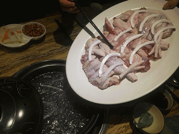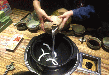 汤底煮沸了就下鸡肉,5分钟后即可食用