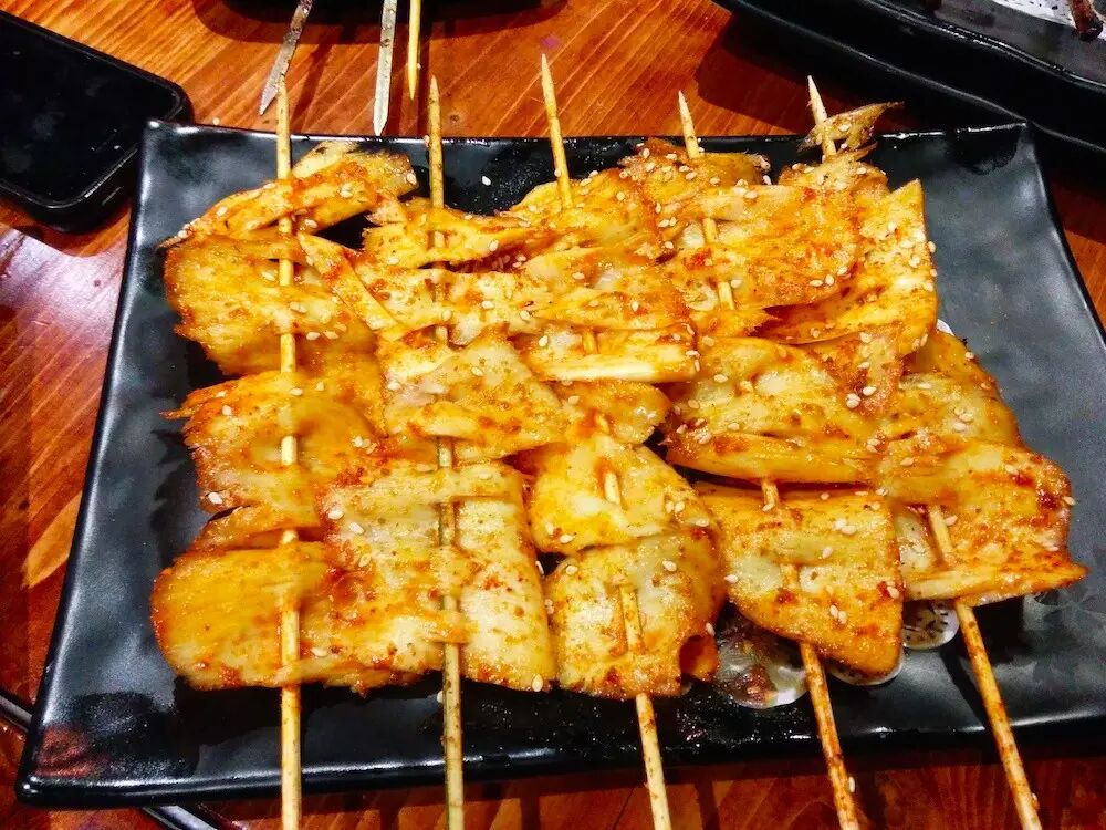 除了羊肉串,肉类串烧中的【牛肉串,牛板筋,鸡胗,鸡心和鸡翅】也很值得尝试。据吃货小分队的试吃团报告,“板筋的质感和火候很到位”,“鸡胗鸡心Q弹可口”。