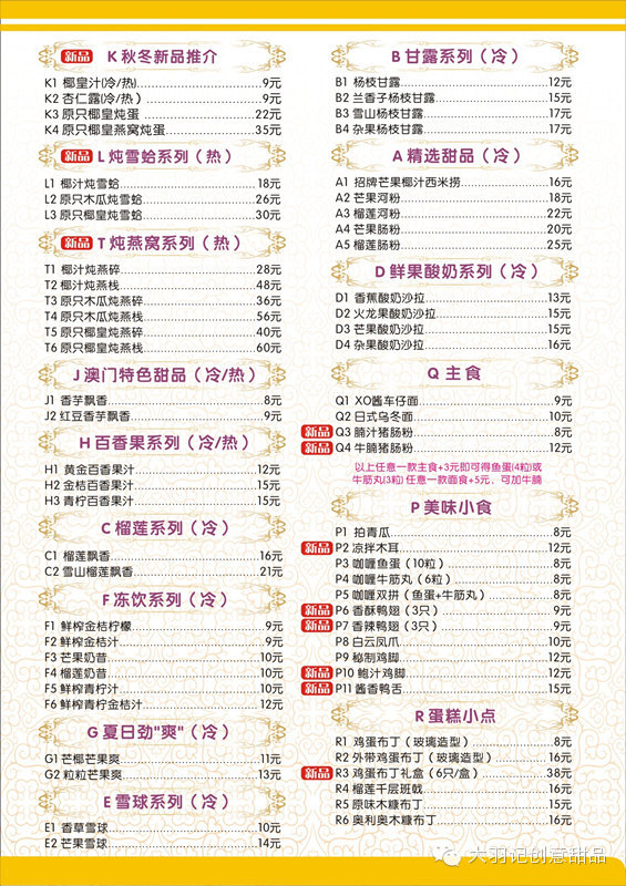 回复【1】 查看[大羽记新品.甜品/炖品篇]