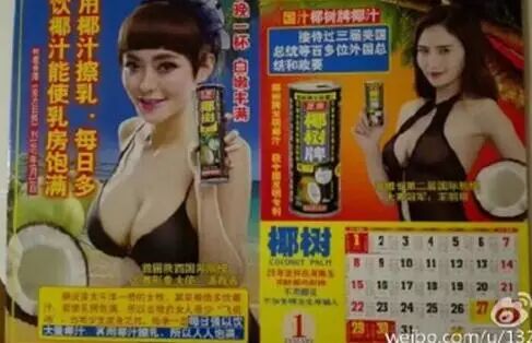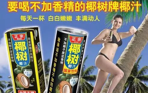 更令人诧异的是,除了“早晚一杯白白嫩嫩”之外,椰树椰汁竟然还宣传,“用椰汁擦乳,每日多饮椰汁能使饱满。”
