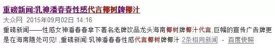 另据报导,椰树椰汁的代言人之一是有着“乳神”之称的潘春春。
