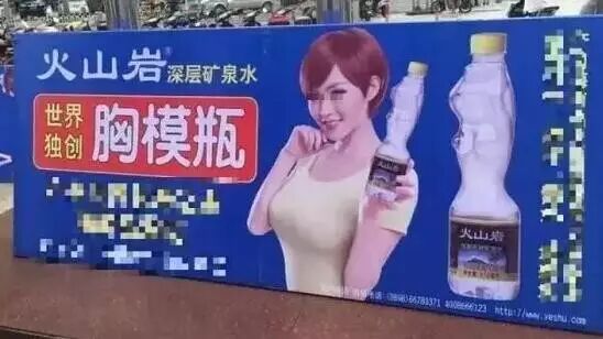 更丧心病狂的是,椰树集团给旗下的一款矿泉水,设计了“世界独创胸模瓶”!
