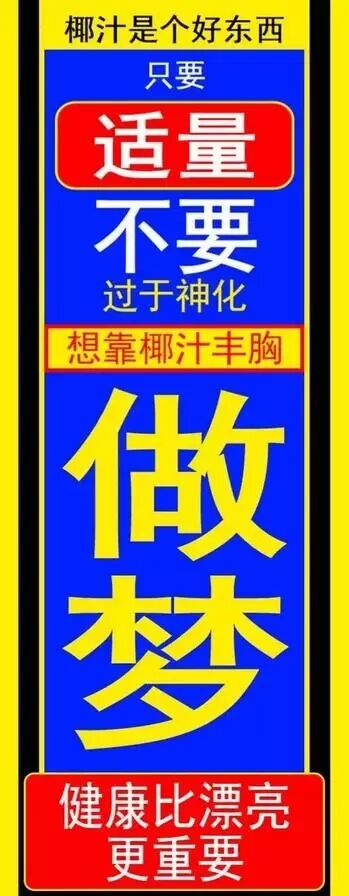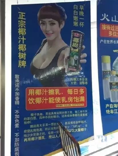 有些广告牌上甚至还出现了“用椰汁擦乳”能饱满乳房的说法——