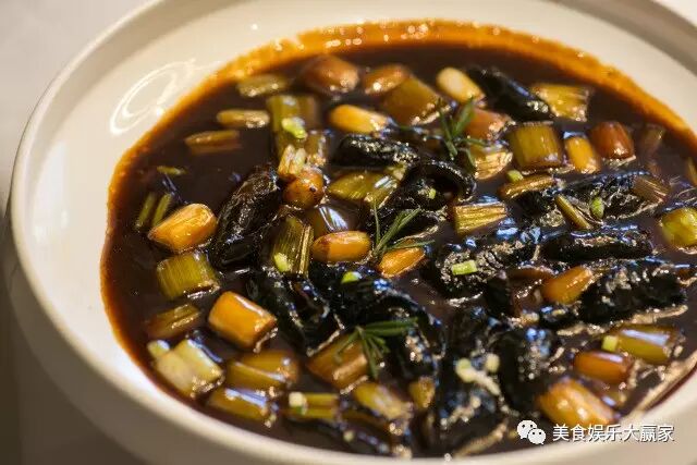 最为地道的葱烧做法,迎合东北人浓郁的口味和特色,成品汤浓味香,海参汁捞饭赞到起飞,凉了之后汤呈胶冻状,足以看出这道菜营养价值的无敌。