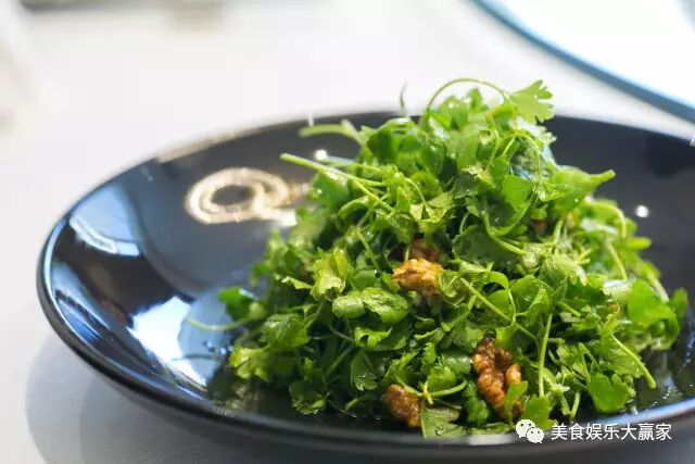 这种菜色翠细嫩口感好,像香菜和芹菜味的结合,样子小巧可爱嫩绿无比,给人的感觉特别美好,配上核桃仁清香微酸,开胃解腻。