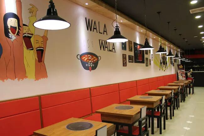 “哇啦哇啦”是一家正宗的韩国餐厅,颇有艺术感的涂鸦是韩国欧巴亲自设计并手绘上去的。一进入餐厅,最醒目的墙面就是walawala school了,上面红色的戴墨镜的小人竖着大拇哥很是得意,旁边的黑板则写着walawala的小贴士。