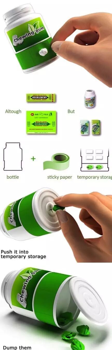 5. 这个罐装口香糖的设计让你既可以把吃过的口香糖粘在贴纸上丢掉,又可以把它们临时塞在罐子底部最后一起丢掉。