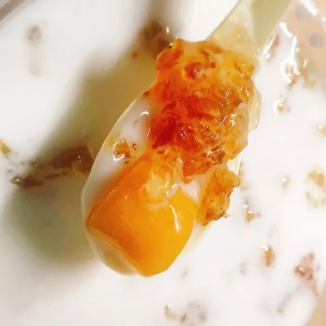 一年多来苦苦寻觅贝岗好吃的芋圆糖水好让自己断了出岛吃鲜芋仙的瘾,阿氯在最近终于熬出了头。泰有feel的椰汁芋圆桃胶,椰汁很椰芋圆很 Q桃胶很胶,650ml容量15颗大芋圆,可见料超级足,足到着急打开餐盒的话里面的糖水就溢出来了!