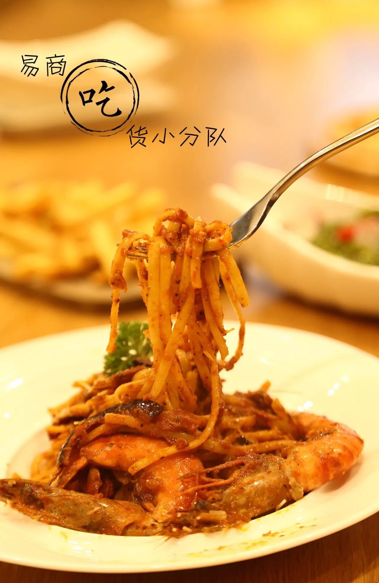 意面、虾子全方位的被酱汁包裹
