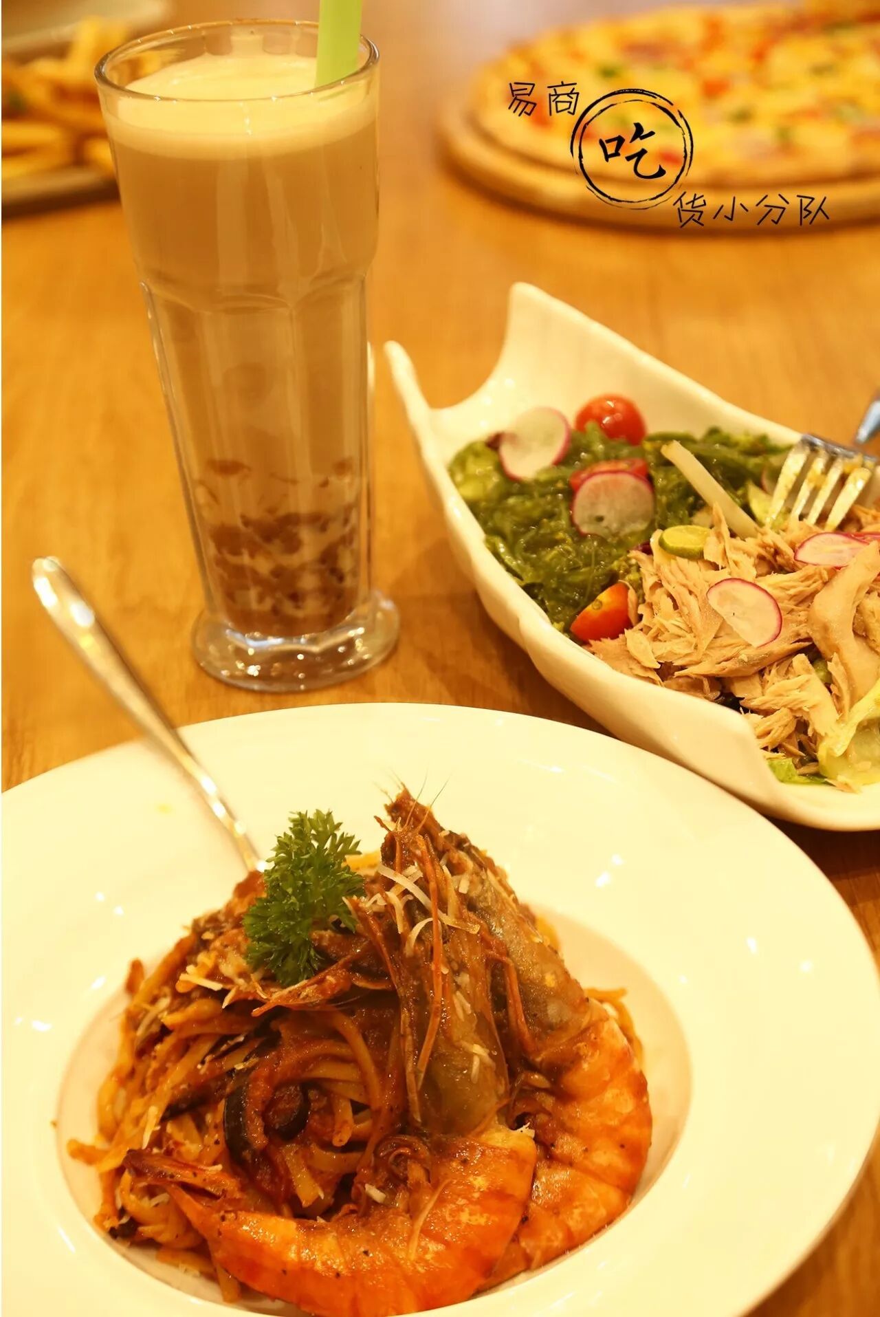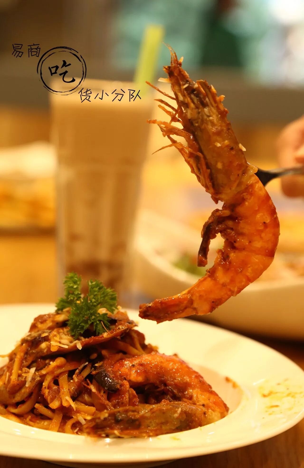 用料简直太用心,超大的虾搭配意面