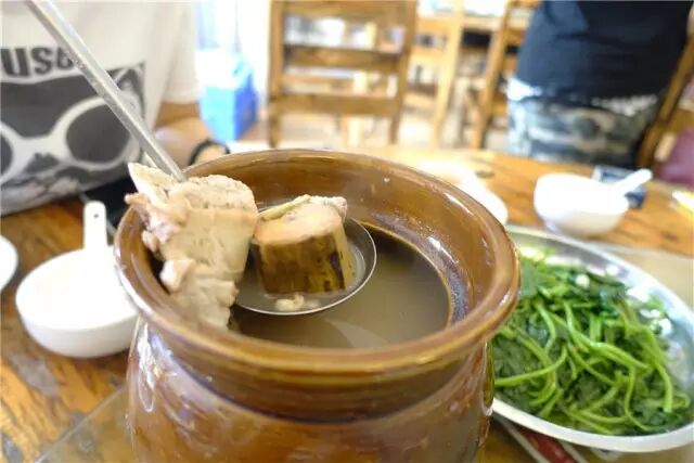 材料果然落得真系够足,呢个汤用噶系新鲜土猪肉同本地大蕉加上薏米等等清补噶汤料熬成。乍听起身,咁奇特噶汤料组合仲以为味道会怪怪,点知味道画风系咁小清新,完全不重口,就系咸咸地,饮落超顺喉!