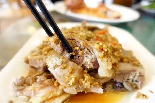 作为一个专业噶吃货,标准噶食肉兽,只有一只烧鸡系唔足以打发小编噶!立刻点多一份沙姜白切鹅!咪以为呢度噶白切鹅就系白切咁简单,喺准备噶时候已经用4种以上噶独家药材配方浸透鹅肉,紧紧锁住肉香,令整体口感更鲜嫩多汁而且营养丰富。当然选用噶鹅肉更加唔简单啦,系用新鲜噶"黑粽鹅",仲要对鹅噶体重有严格挑选准则,每只起码要有7、8斤先可以保证制作出黎噶鹅肉够鲜够味道!