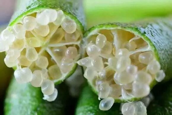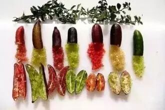 手指柠檬也叫做澳洲指橙,它是产自澳大利亚,可以说是柠檬家族的极品,它的香气非常的独特,果肉的样子也是比其他的柚子和柠檬更加的迷人,圆圆的比较像鱼籽,味道和柠檬的味道差不多。