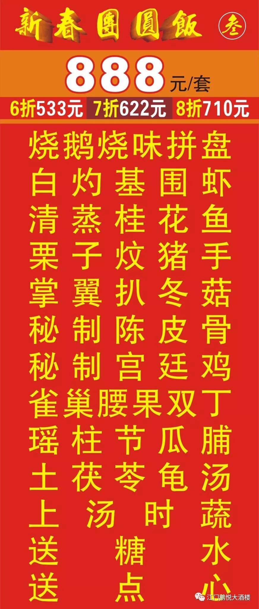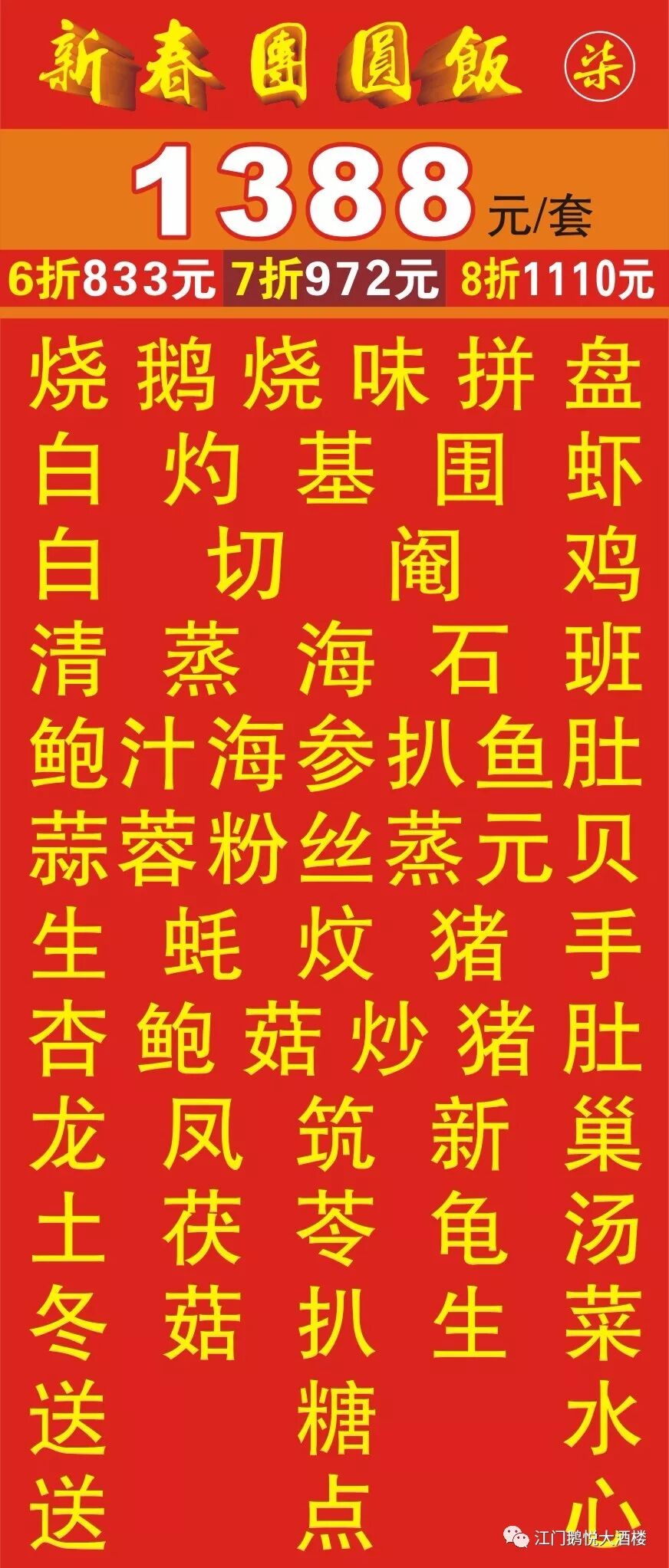 承接:喜宴 聚餐 生日宴 婚宴 满月酒 入伙酒 团年饭等宴席