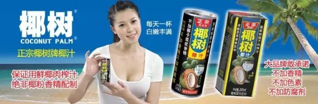 椰树在2006年开始,在央视投放主题为“白白嫩嫩,曲线动人,喝椰树牌椰汁”的广告,不同版本演绎至今。