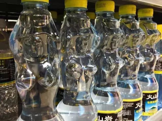 椰树集团给旗下的一款矿泉水,设计了“世界独创胸模瓶”……