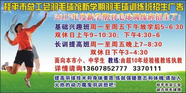 周末上午班300元/16节课,每日两节课,每节课45分钟,9:00-11:00 周末下午班300元/16节课,每日两节课,每节课50分钟,16:00-18:00 注:凡报名学员均赠送一套球服 报名热线:13197669562梁教练、杨教练