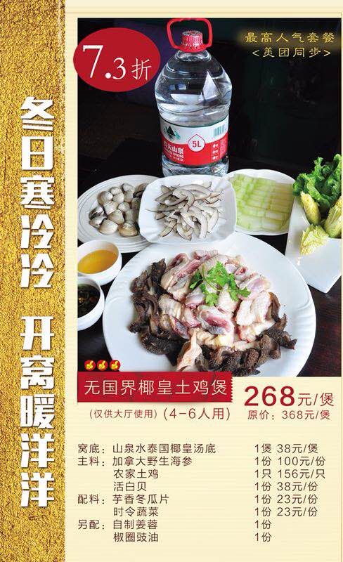 主料:加拿大野生海参,农家土鸡,活白贝+