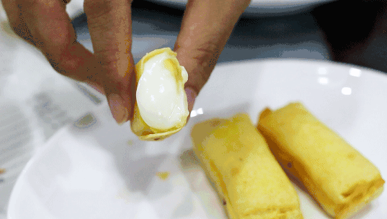 比手指还要粗的炸牛奶,撕开酥脆的表皮,里面的牛奶爆浆而出,味道甜而不腻。