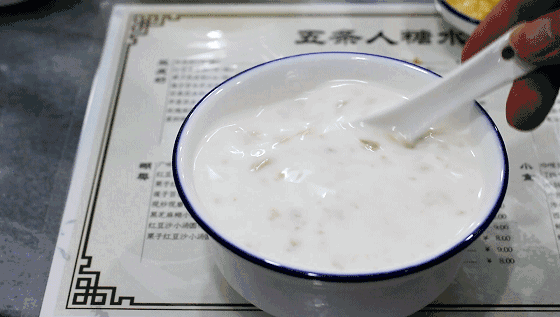 热乎乎的芝麻糊,放进嘴里芝麻香味一下子炸开。黑芝麻吃起来香滑浓稠,还有细微的颗粒感,每一口都是大满足。